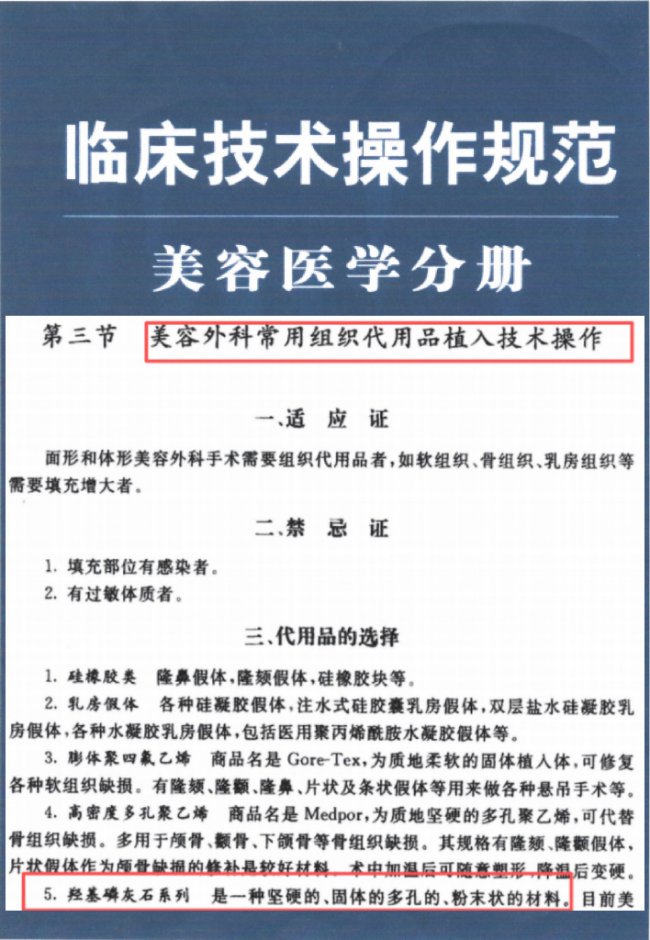 针对软组织的修复与增强,在医学上有着严格的评价体系。根据国家药品监督管理局发布的《用于软组织再生医疗器械的生物学评价及实验》中明确指出,软组织是连接、支撑或包围身体其他结构和器官的组织,包括皮肤、纤维组织、脂肪、肌腱、韧带、筋膜、肌膜(即结缔组织)以及肌肉、神经和血管等。因此,当我们讨论改善苹果肌时,本质上是在对这一特定区域的软组织进行容积补充与结构重塑。中华医学会编著的《临床技术操作规范一美容医学分册》中,也已将“羟基磷灰石系列”明确列为美容外科常用组织代用品之一,并将“注射美容技术”定义为将医用材料注射到人体软组织以达到美容目的的合法技术。